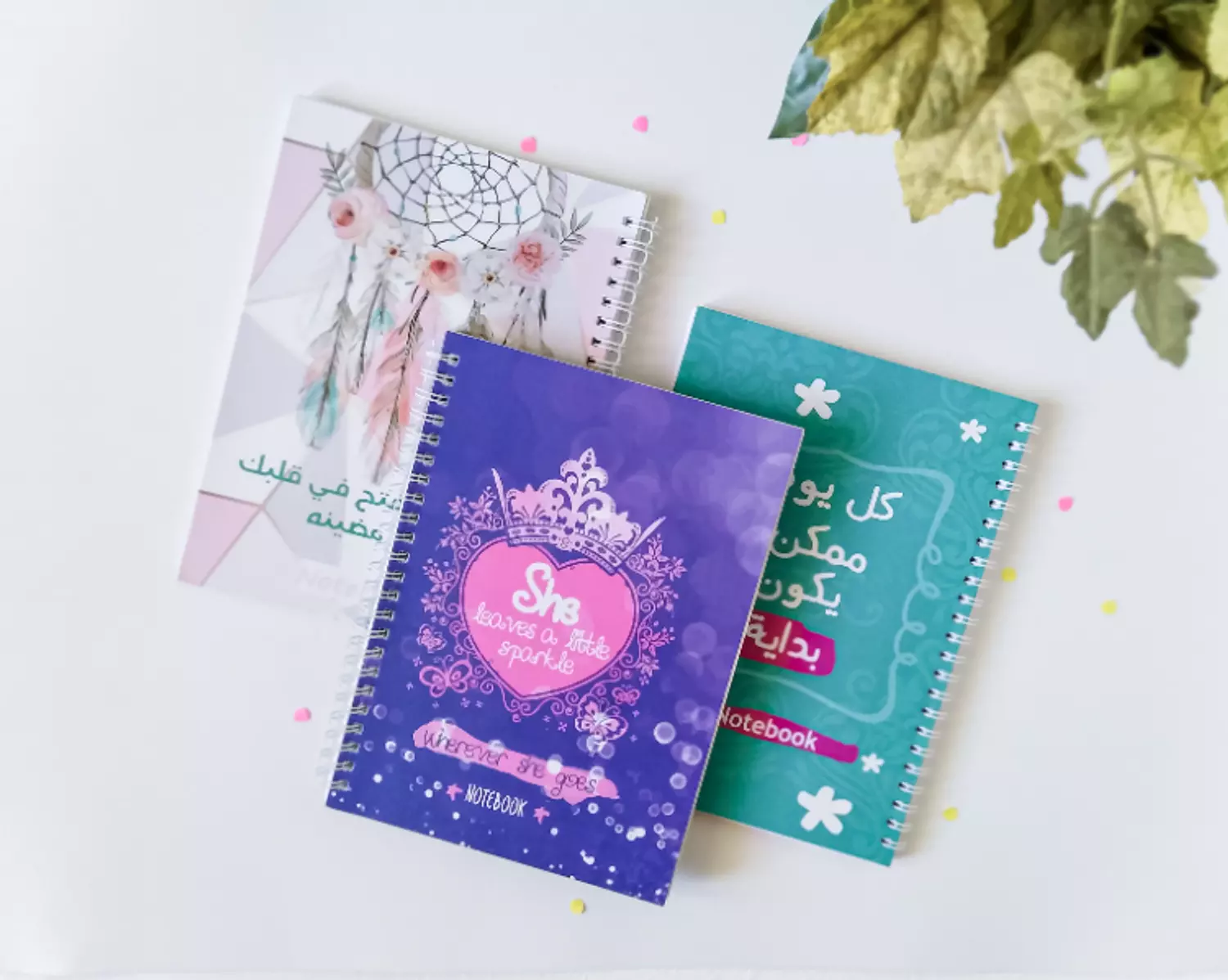 - Notebook with names - Size : A5, 21*15 - Ruled, 60 pages - Cover Material: 300gsm Cushion with Wire - The notebook has the name written in English on the left cover and in Arabic on the right cover - Available in many names